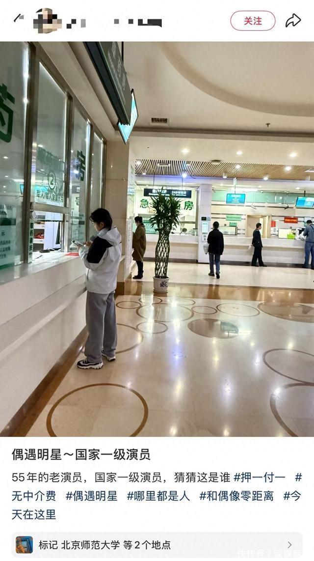 10月9日,有网友在社交平台发文,称“偶遇明星,国家一级演员”,并且提到是55年的老演员,非常意外能在医院里看到她。